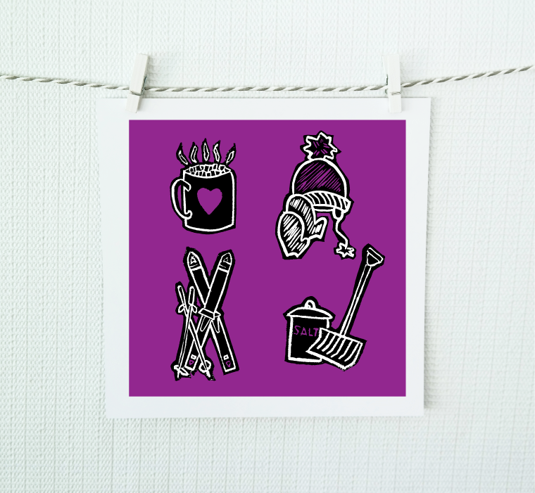 Bring winter's dual nature into your home with this expertly crafted giclee print, derived from Jamie Palmer Keating's original hand-cut linoleum block artwork. The design playfully juxtaposes winter's cherished pleasures, skiing, mittens, and steaming cocoa, with its less romantic demands like snow removal and salt. Each print is meticulously produced on archival, medium-weight matte paper using vibrant CMYK inks, then personally signed and dated by the artist. Shipped with professional care in protective foam and bubble wrap, wrapped in Jamie's signature orange tissue, this unframed piece invites you to display it according to your own creative vision.
